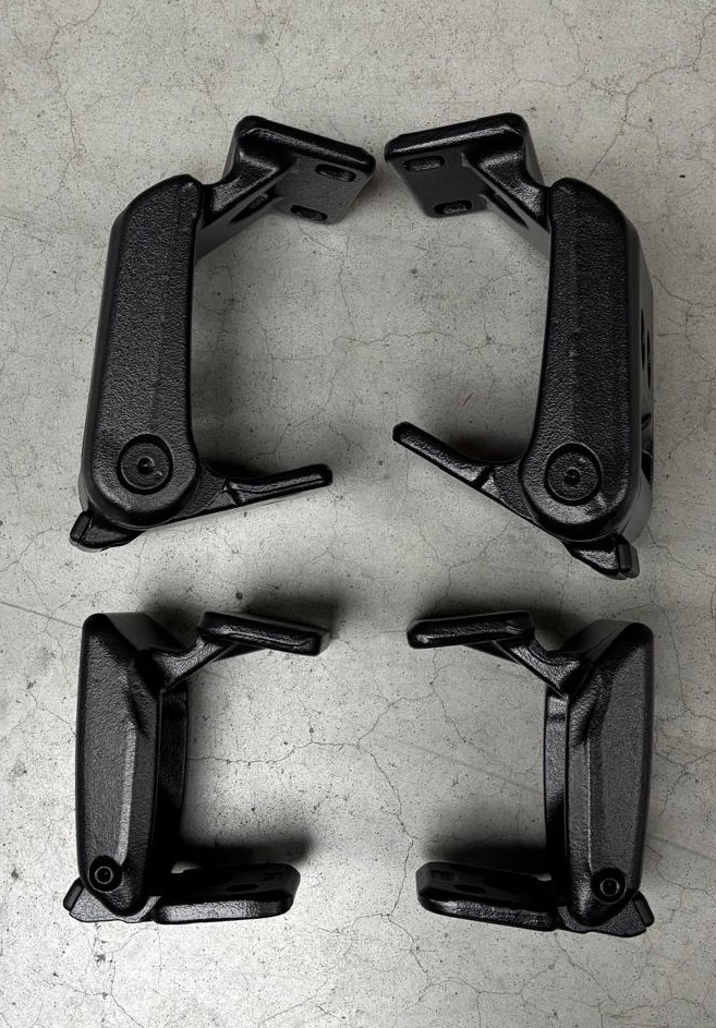Upgrade je Mercedes Sprinter 2018+ met deze 180° deurscharnieren, een slimme vervanging voor de standaard 270° scharnieren. Dankzij de 180° opening kun je nu eenvoudig vrachtladders of andere accessoires monteren, zonder dat de deuren de flares raken bij het openen. De scharnieren worden professioneel gespoten in PU offroad lak.