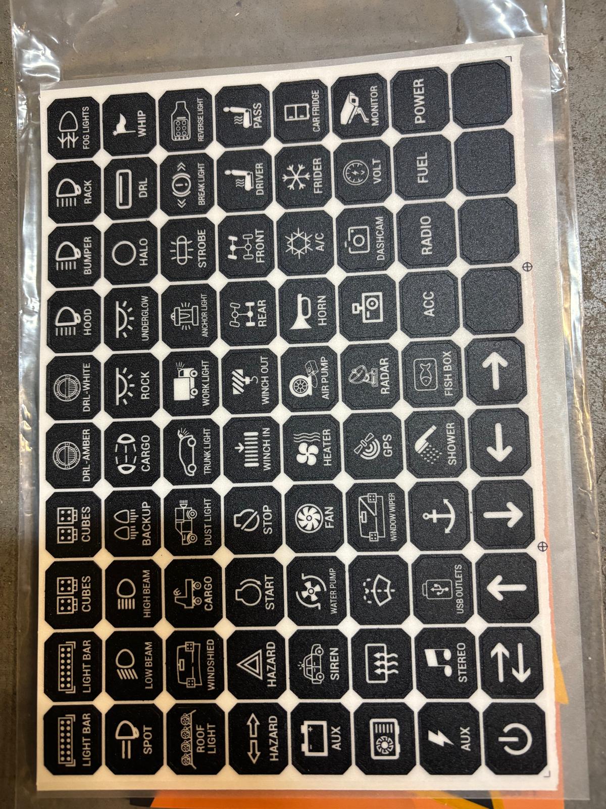 Met de meegeleverde stickers/labels kun je elke knop duidelijk markeren voor jouw configuratie. Ideaal voor offroad-verlichting, worklights, poweraccessoires en meer.