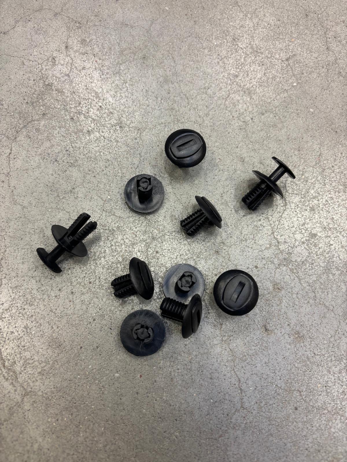 Zwarte clips om houten binnenpanelen in de originele Mercedes-clipgaten te monteren. Stevige pasvorm, snelle montage en demontage zonder speciaal gereedschap.
