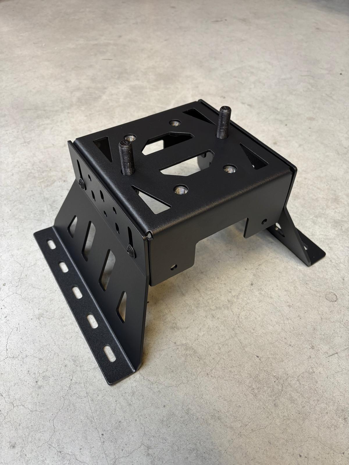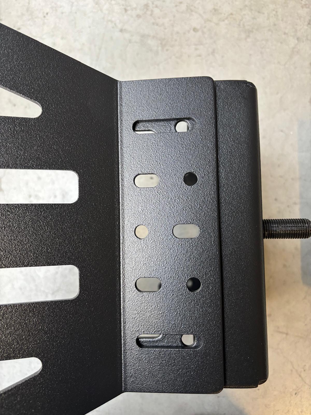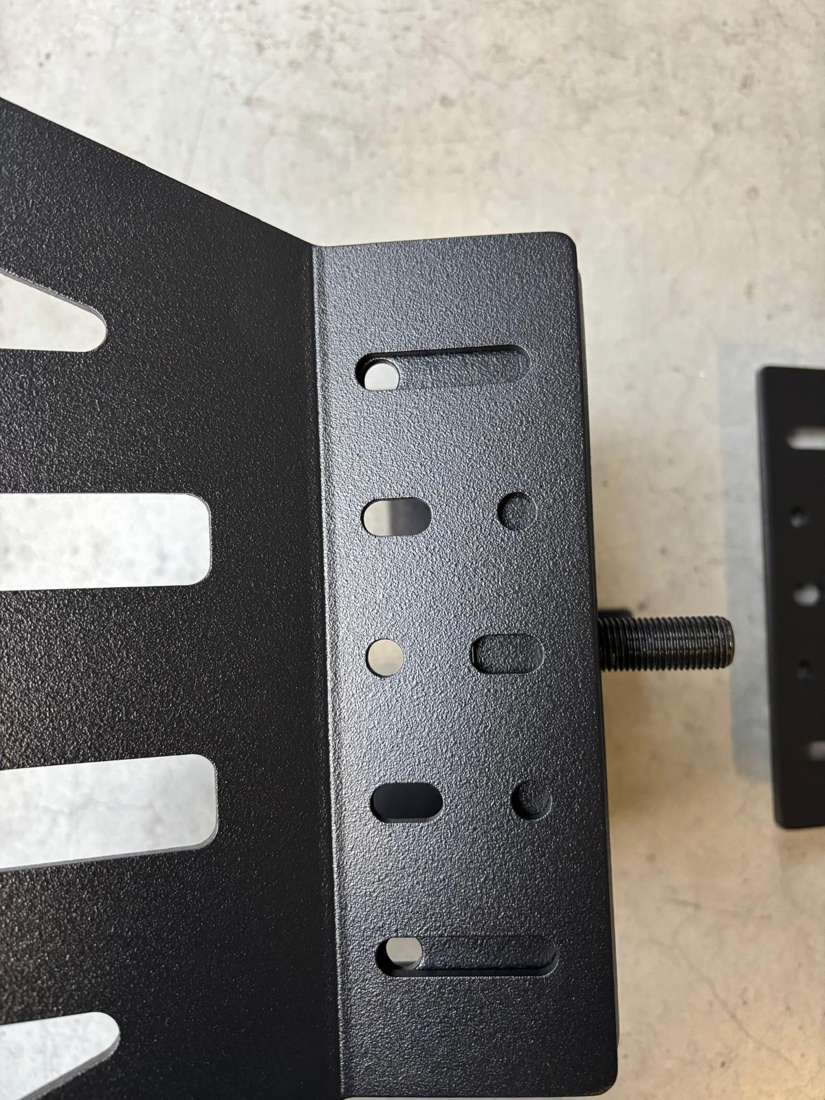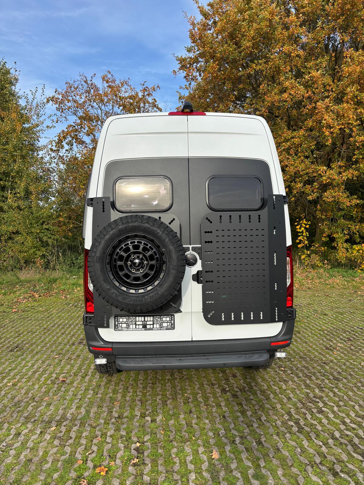 Verstelbare reservewielhouder voor de cargo ladders op de Mercedes Sprinter (2018+). In diepte verstelbaar, zodat elke breedte van band en velg past. Plug-and-play op onze Sprinter-ladders. Gemaakt uit aluminium 4 mm en RVS, geleverd met alle bevestigingsonderdelen, mee-gespoten in PU offroad lak.