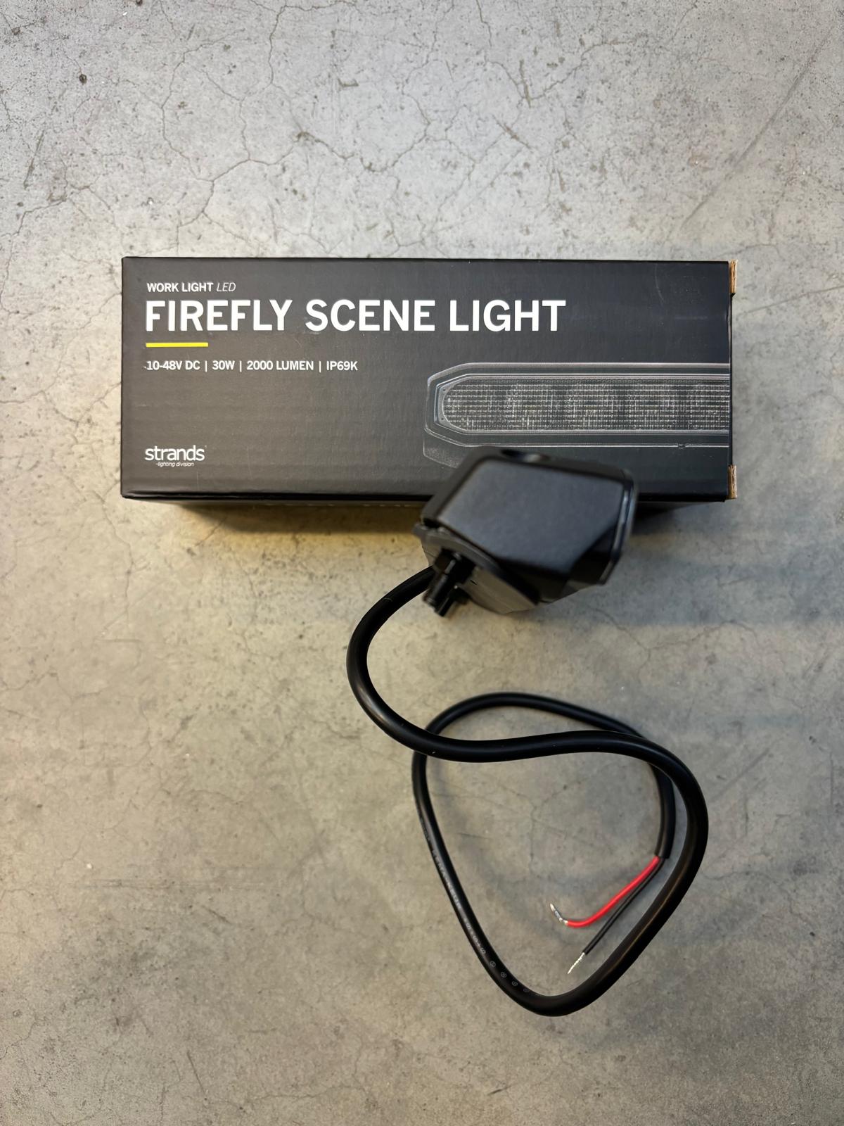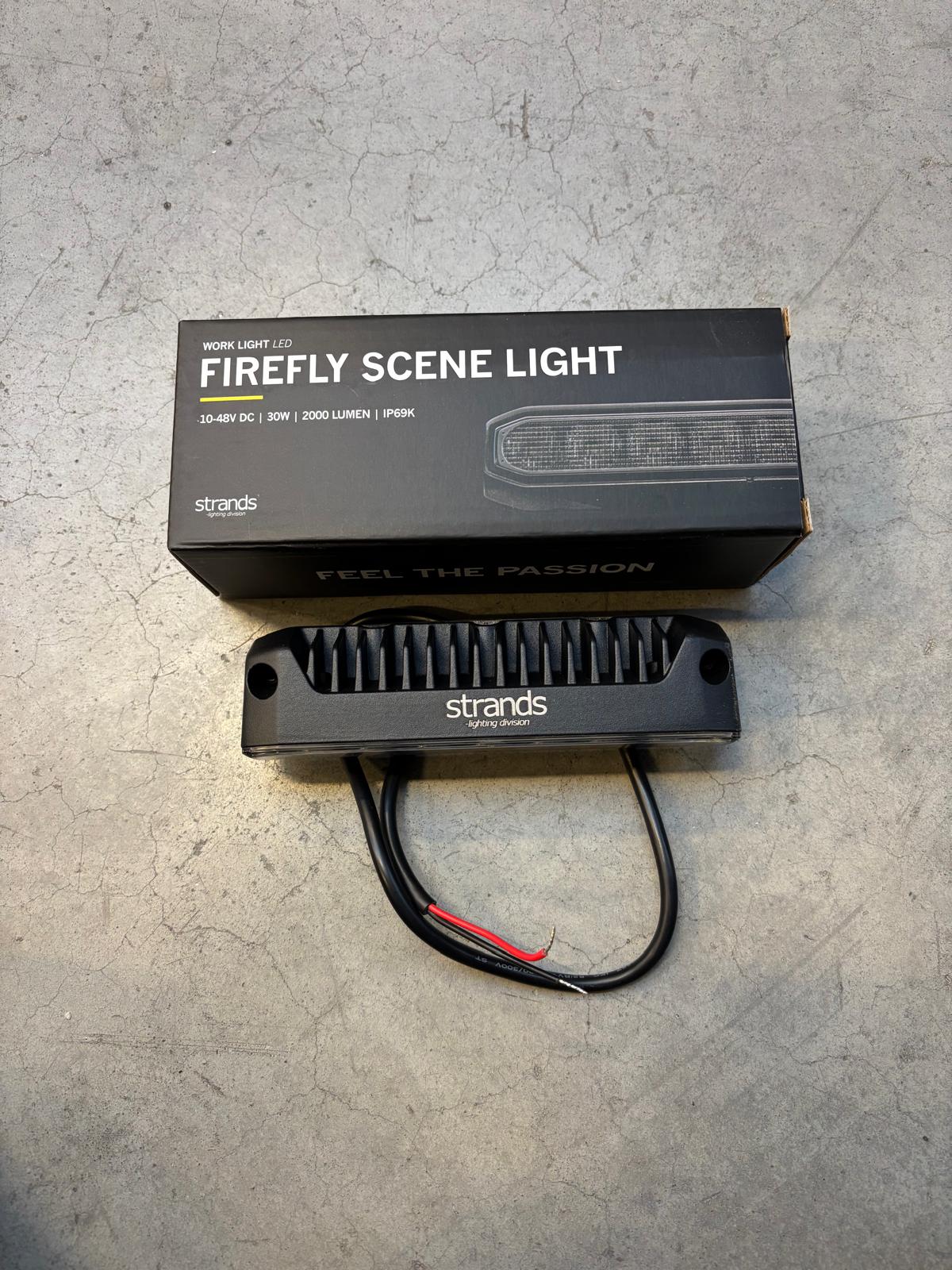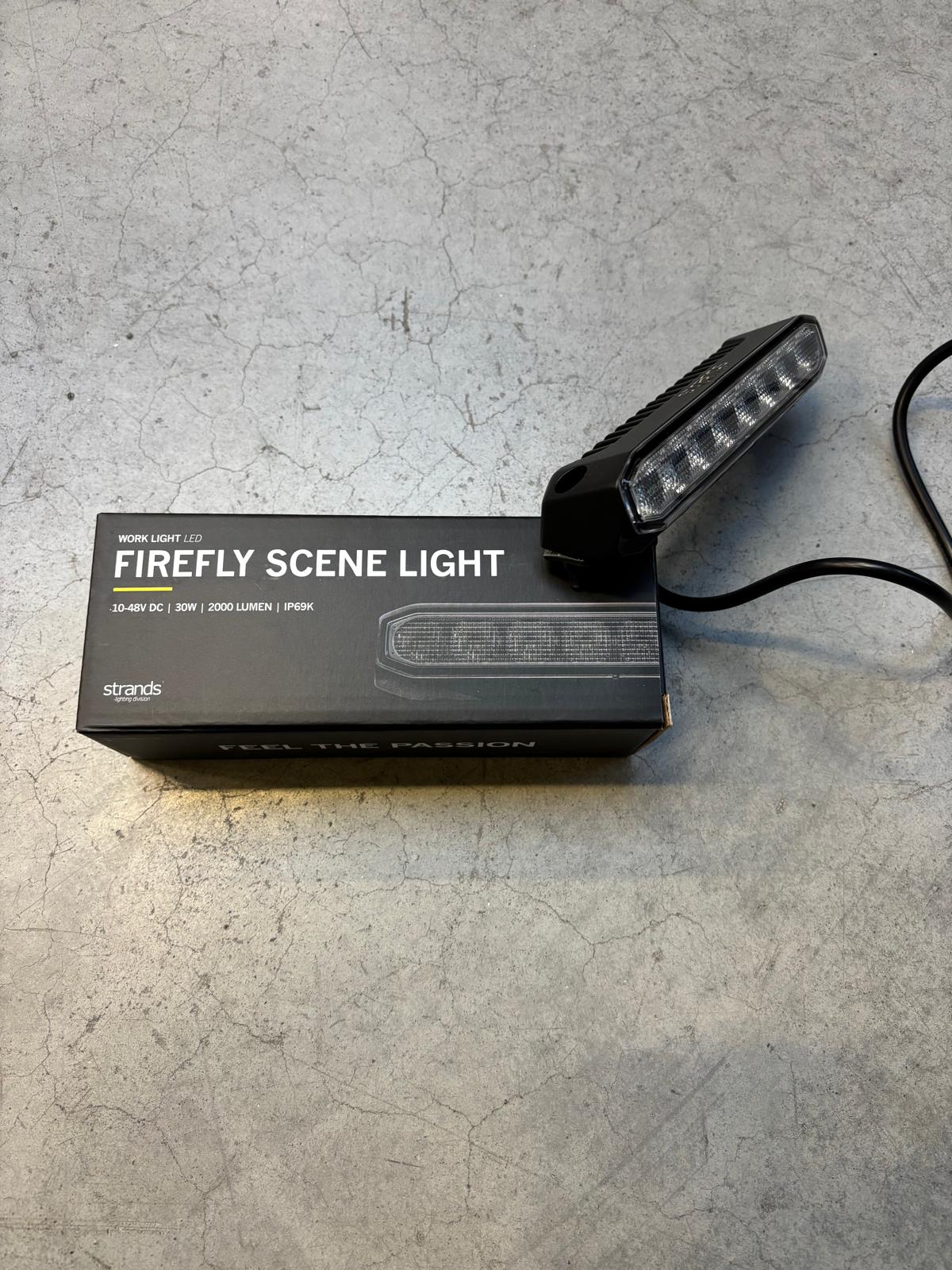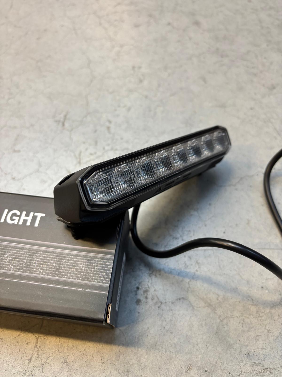 Compacte scene light voor zij-/achterzijde van voertuig of camper, breed lichtbeeld met neerwaartse hoek voor werk- en instapzones. Robuuste bouw, 10–48V, IP69K, ECE R10 EMC.